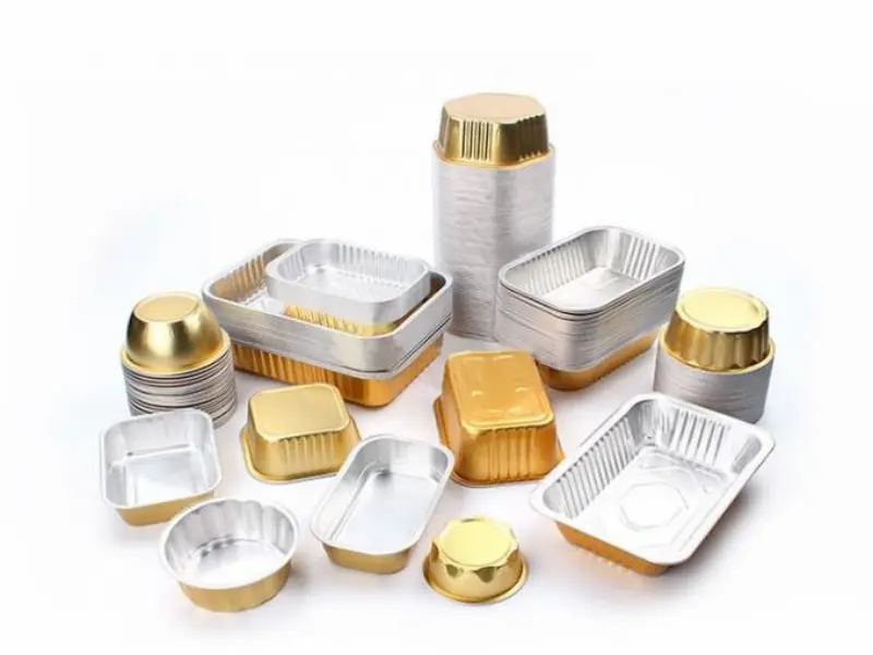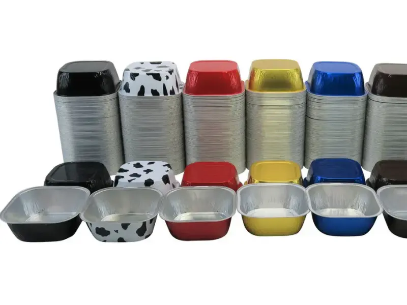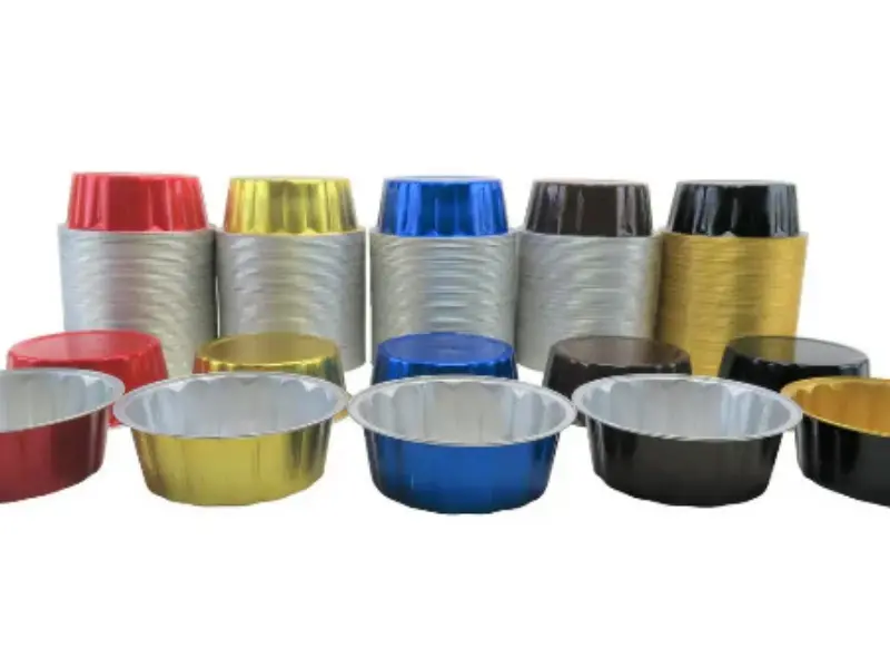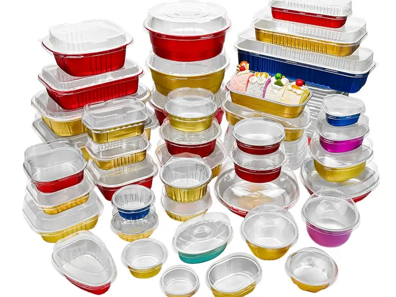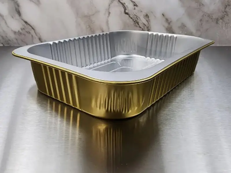 Colored aluminum foil pans are metal containers with tinted coatings. They look like standard silver pans but come in gold, red, blue, and other colors. The coating sits on the outside. The inside stays silver and food-safe.