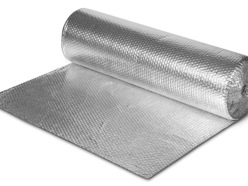 - Bubble foil insulation: Two layers of foil separated by a layer of air bubbles (like bubble wrap).